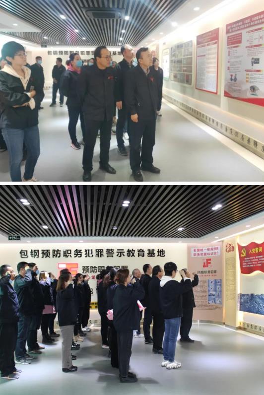 为进一步强化党员领导干部作风建设不断深入,持续增强党员领导干部和有业务处置权岗位人员廉洁自律意识,保持政治定力,筑牢拒腐防变思想堤坝,强化履职尽责、照章办事、规范用权的工作成效,近日,天骄清美公司党总支开展 “强作风、树形象——党员先行”主题党日活动,组织领导干部及有业务处置权岗位人员27人参观包钢(集团)公司预防职务犯罪警示教育基地。