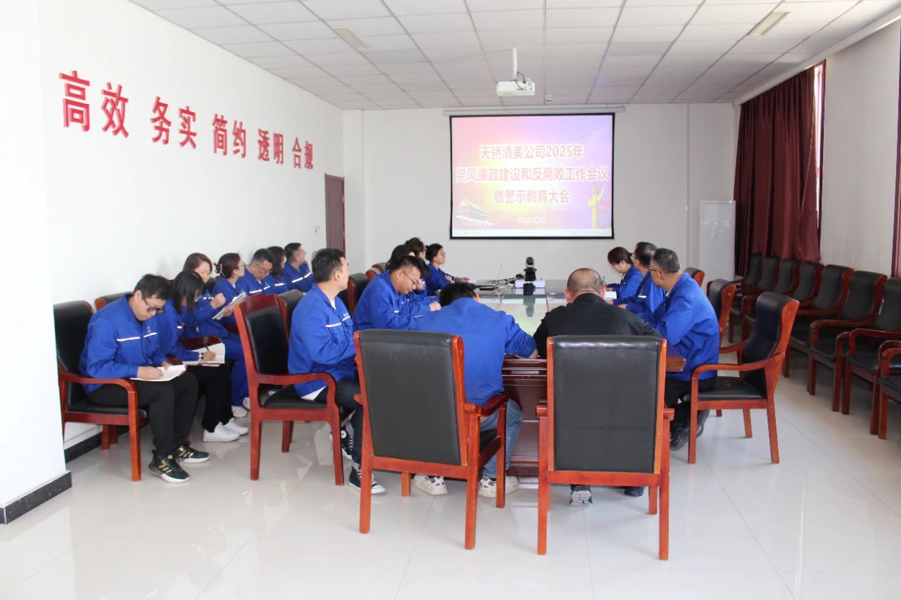 4月7日上午,天骄清美公司党总支召开2025年党风廉政建设和反腐败工作会议暨警示教育大会。公司领导班子成员、纪检员,各部门负责人,各党支部书记、委员参会。